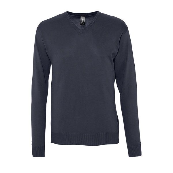 Pull homme col V. Manches montées. Finitions bas et poignets par bord côte 1x1. Coupe ajustée.