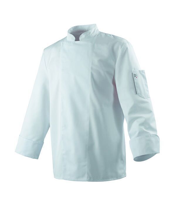 Veste mixte à col officier. Fermeture asymétrique par pressions cachées. Poche sur manche. Manches longues.