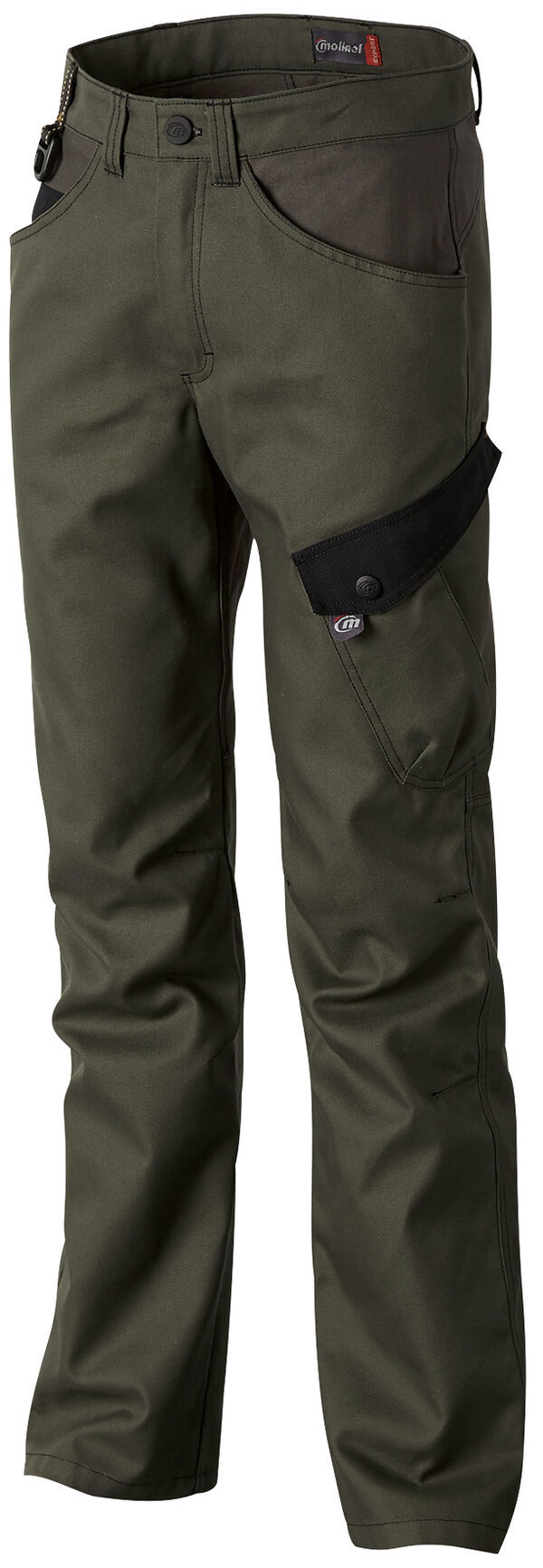 Pantalon. Ceinture 5 passants avec passant large milieu dos. Sangle accroche clef. 2 poches cavalières amples avec fond de poche Cordura®. 1 poche contrastée dans poche cavalière droite. Genoux préformés avec pinces. 1 poche cuisse gauche à soufflet, fermée par rabat contrasté avec pression. 1 poche dos plaquée. Empiècement contrastant en Cordura®. Rehausse dos. Finition double surpiqûre. EJ : 84 cm.