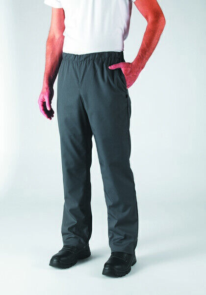 Pantalon à ceinture élastiquée. Poches côtés. Bas de jambes finies par ourlets, longueur réglable par pressions.