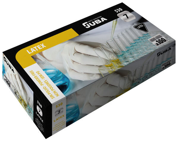 Gants jetables, en latex naturel non poudrés. Épaisseur : 0,12 mm. Longueur : 24 cm. Boîte de 100 gants.