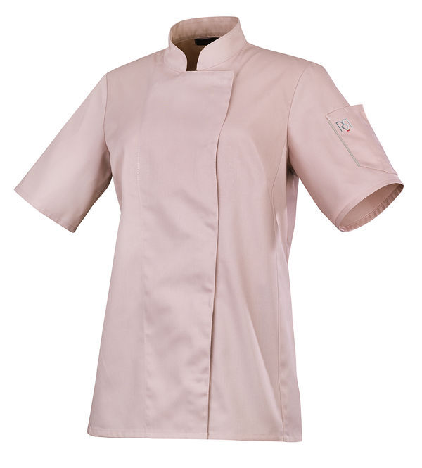 Veste femme à col officier. Fermeture asymétrique par pressions cachées. Découpes princesse devant et dos. Pinces poitrine. Poche sur manche gauche. Manches longues.