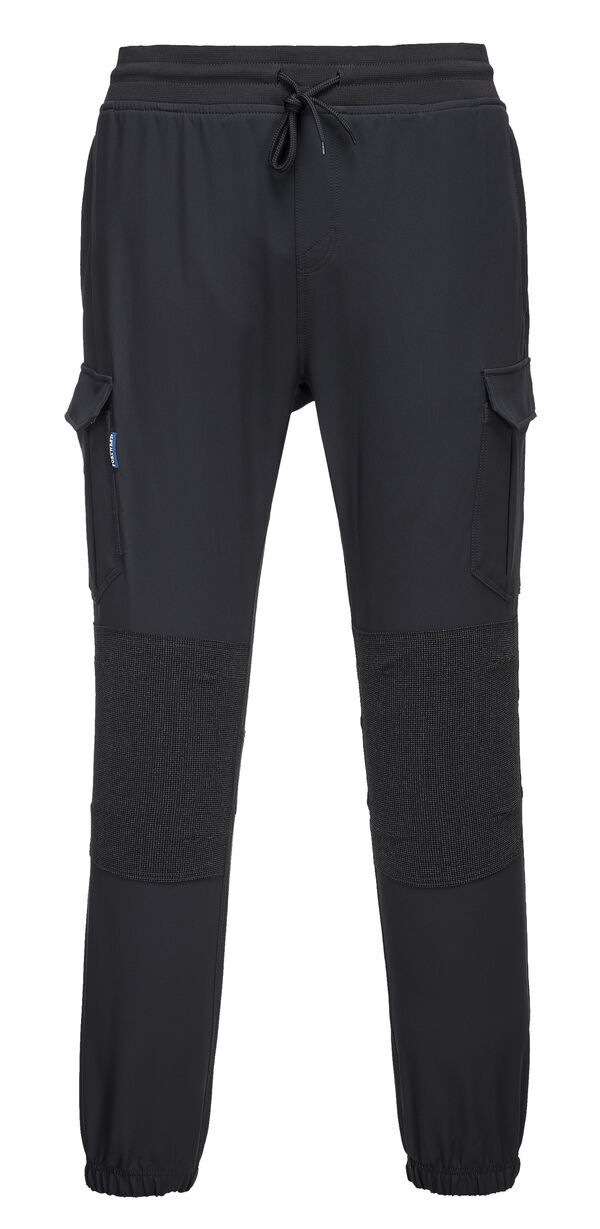 Pantalon type jogging slim fit. Ceinture côtelée avec cordon de serrage. Gousset d’entrejambe. 5 poches, dont poches cuisses type cargo. Boucle en D. Les genoux préformés. Protège-genoux double couche.