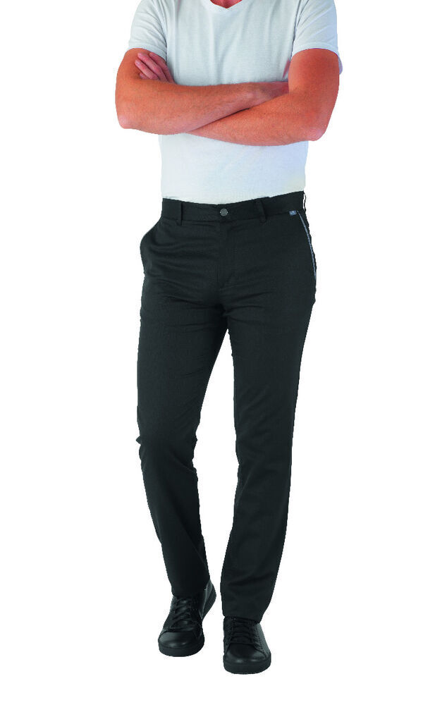 Pantalon mixte thermorégulant. Ceinture fermée par un bouton. Passants à la ceinture. Braguette fermée par zip. Poches italiennes. Poche passepoilée arrière côté droit. Empiècement dos. Bas de jambes finis par ourlets. Matière thermorégulante 37.5®. E.J. : 84 cm.