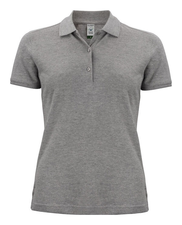 Polo femme avec bande de propreté au col. Patte 3 boutons ton sur ton. Structure tubulaire. Coton bio prérétréci avec traitement aux enzymes.