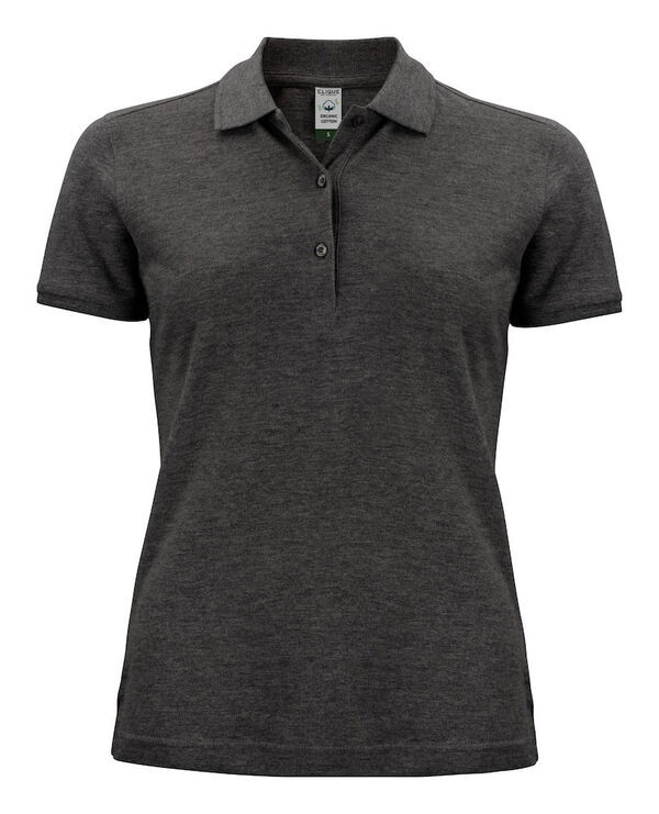 Polo femme avec bande de propreté au col. Patte 3 boutons ton sur ton. Structure tubulaire. Coton bio prérétréci avec traitement aux enzymes.