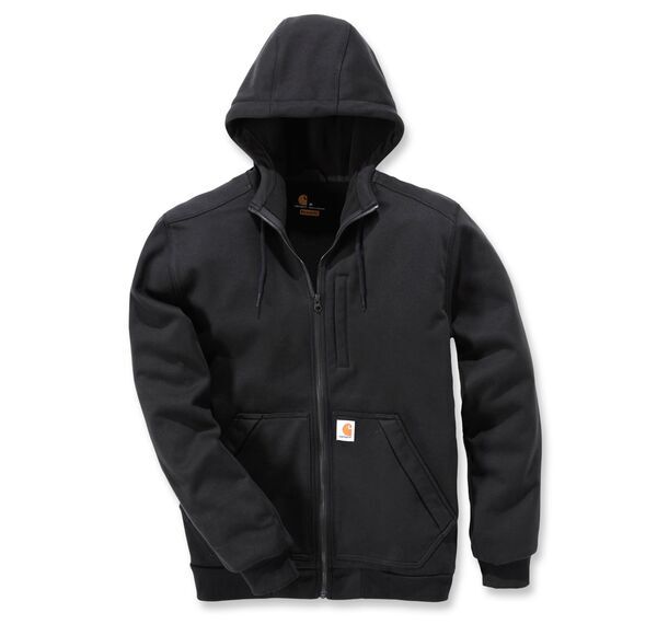 Veste softshell type sweat-shirt. Capuche réglable avec cordon de serrage. Col montant. Fermeture centrale par zip YKK®. Poche poitrine zippée. 2 poches frontales avec rabats et étiquette Carhartt® cousue. Poignets et tour de taille bord-côte. | Technologie Lifa® Stay Warm.