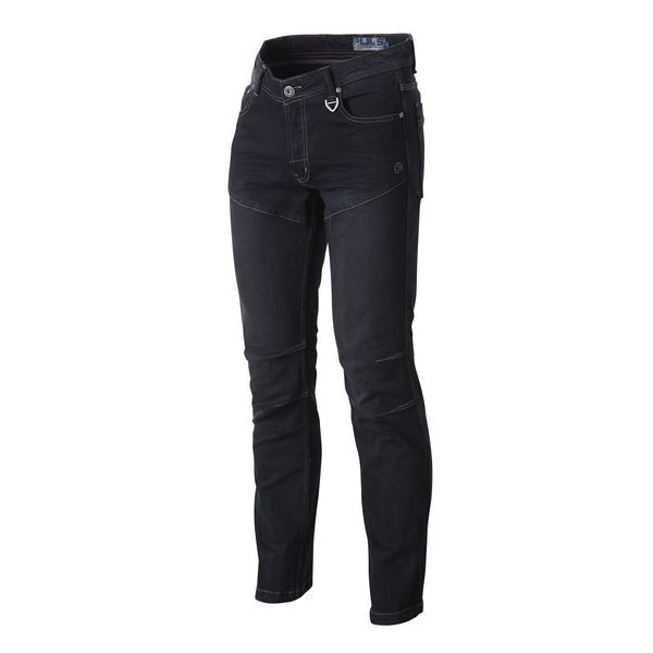 Jean homme. Ceinture 5 passants dont 1 double milieu dos et un anneau métal devant gauche, braguette zippée, 2 poches cavalières devant, poche ticket à  droite, 2 poches dos, sangle accroche marteau en matière principale, triple surpiqûres renforcées à l'entrejambe/côtés et réhausse-dos, biais de finition intérieur ceinture, solidité renforcée par points d'arrêts.