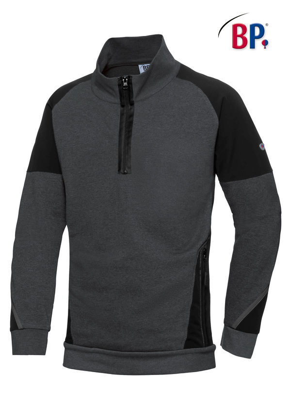 Pull homme demi-zip. Col montant avec fermeture à glissière. 2 poches latérales avec fermeture à glissière. Manches longues. Bandes réfléchissantes manches, poignets et base bord-côtes. Empiècements épaule et côtés robustes en stretch. Longueur : 74 cm.