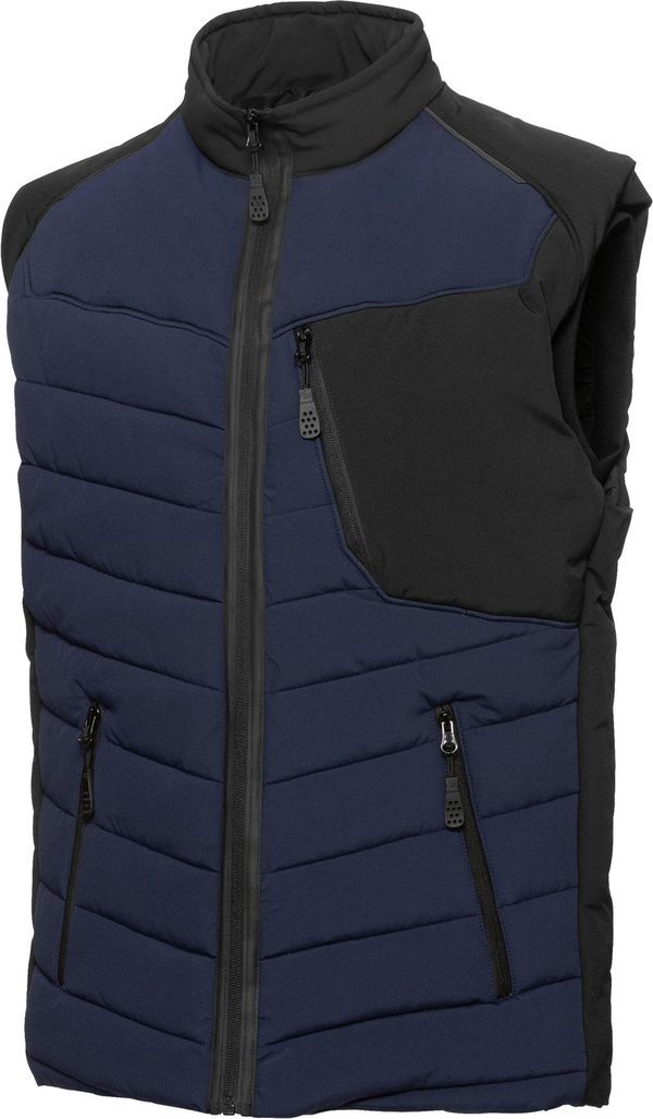 Gilet thermique mixte matelassé. Col officier, fermeture à glissière sur le devant. Poche poitrine et 2 poches latérales avec fermeture à glissière. Emmanchure coupe-vent en tricot extensible. Éléments rétroréfléchissants. Membrane imper-respirante. Sans manche. Coupe ajustée.