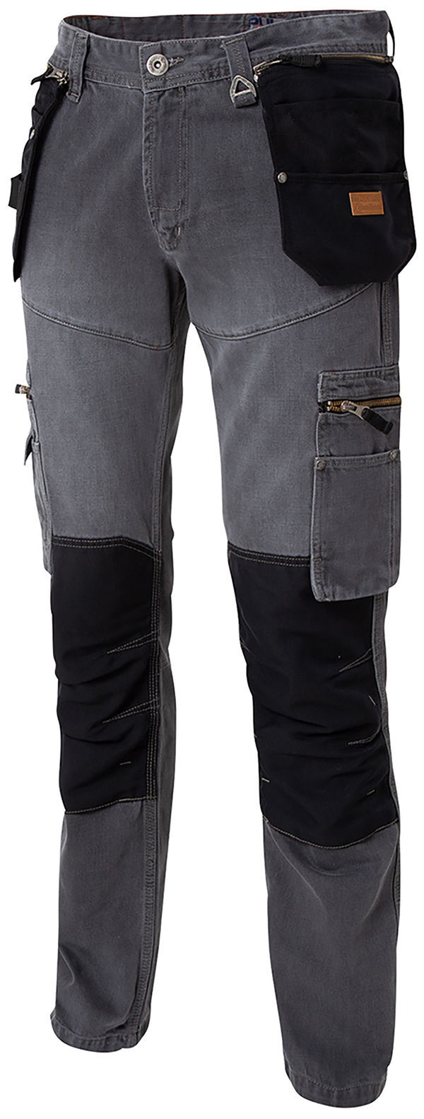 Jean poches holster. Braguette zippée. Ceinture 5 passants dont un double milieu dos. Rehausse dos. Poches porte-outils amovibles par zip. Poche ticket, 2 poches cavalières, 2 doubles poches côtés avec zip, compartiments pour smartphone avec rabat pressionné, 2 poches dos. Sangle côté accroche marteau. Poches genouillères avec renforts Polyamide et système de réglage (2 niveaux, plaques certifiées EN14404 REF.GN08). Triple surpiqûres. Points d’arrêts renforcés. Coupe ajustée. E.J. : 82cm