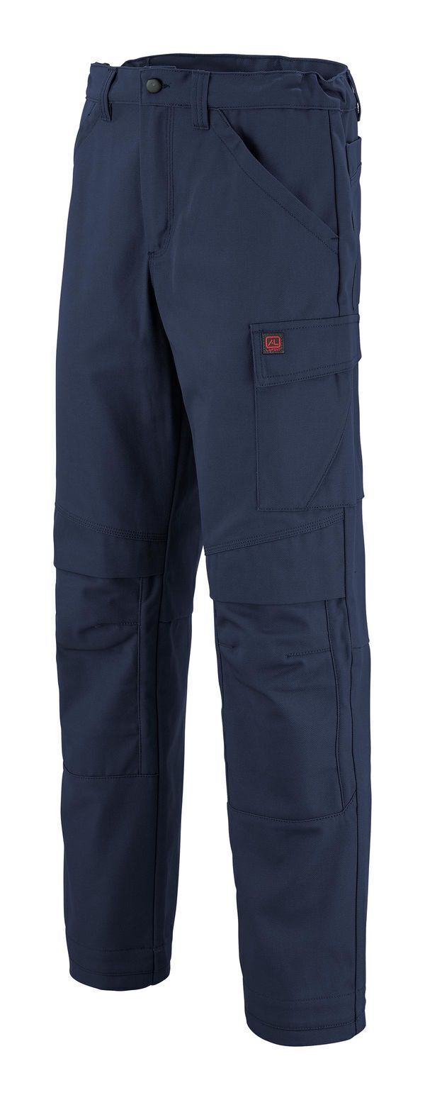 Pantalon à poches genouillères. Ceinture élastiquée côtés. 2 poches italiennes, 1 poche cuisse à soufflet et rabat auto-agrippant et surpoche smartphone, 1 double poche mètre. 2 poches mousses genoux fermées par bandes auto-agrippantes. | Mercerie tout plastique. E.J. : 82 cm (+5 cm).