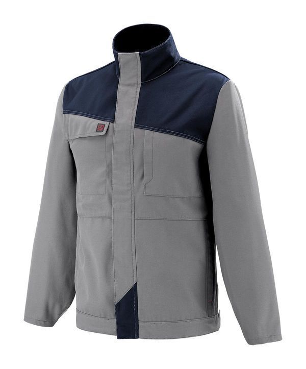 Blouson. Col montant. Collerette de marquage. Empiècements devant et dos obliques. Devant fermé par fermeture à glissière sous patte maintenue par pressions cachées. Poche poitrine droite incrustée sous rabat fermé par Velcro® cachés. Poche poitrine gauche ouverture verticale fermée par Velcro® caché. Poches basses verticales. Bas de manches réglables par pression. Pattes de serrage ceinture réglables par pressions cachées. Ceinture droite. Mercerie tout plastique. Surpiqûres contrastées.