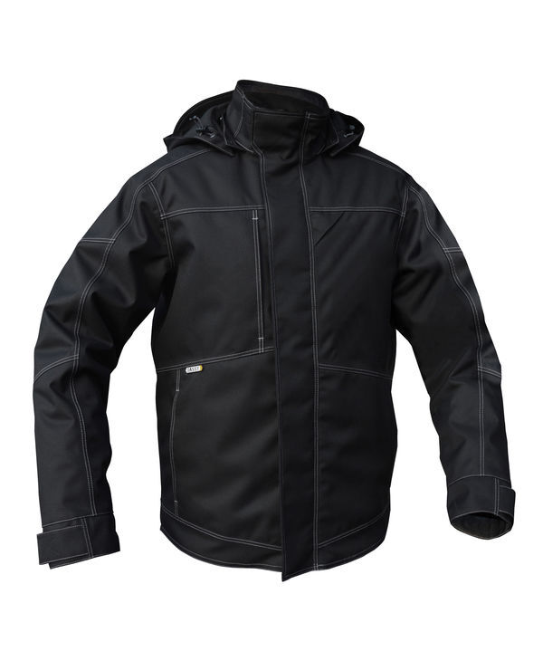 Blouson hivernal. Fermeture à glissière longue cachée sous rabat avec protège menton. Capuche amovible avec cordon élastique de serrage. Dos rallongé. 2 poches basses zippées. Poche poitrine avec zip. Anneau D. Poche téléphone. Poche intérieure. Poignet réglable par velcro® et manchon coupe-vent. Détails réfléchissants. Doublure matelassée. Coutures doubles. Coutures thermocollées.