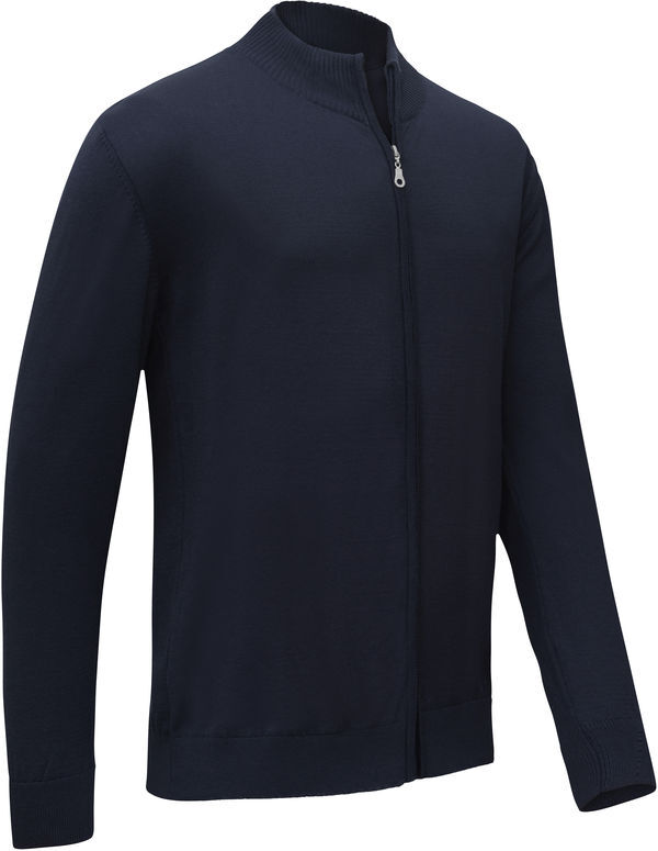 Gilet zippé à col montant. Fermeture milieu devant par fermeture à glissière. Côtes 1/1. Finition bord côte.