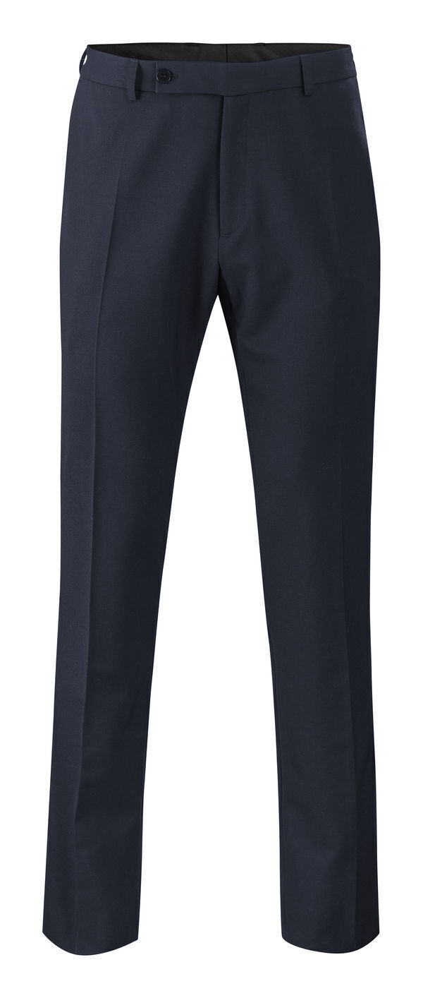 Pantalon homme. Ceinture avec 1 bouton plat. 6 passants ceinture. 2 poches italiennes sur le devant et 2 poches passepoilées. Dos avec simple passepoil. Plis cassés sur le milieu de jambes devant et dos. Bas intérieur ceinture terminée par un passepoil rouge. Coupe droite. E.J. : 90 cm.