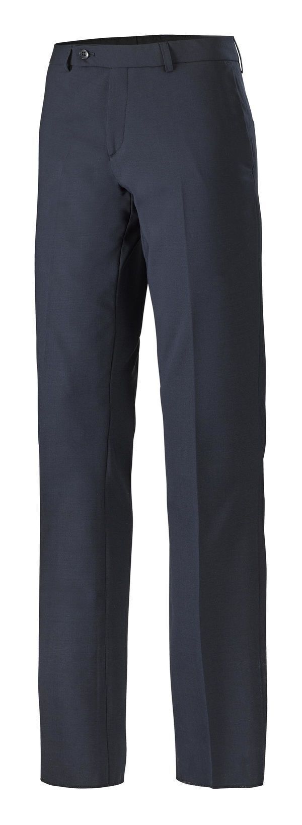 Pantalon de costume homme. 5 passants de ceinture. Fermeture par braguette zippée, 1 crochet et 1 bouton. 2 poches italiennes devant. 2 poches dos simples passepoil dos. E.J. : 90 cm.