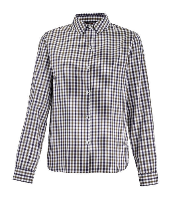 Chemise à carreaux femme. Fermeture milieu devant par boutons. Pinces poitrine. Découpe dos avec pli d'aisance. Manches longues avec poignets fendus. Coupe droite.