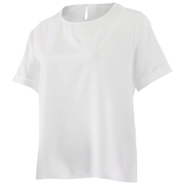 Top fluide entièrement doublé. Encolure ronde. Décolleté dos avec goutte. Manches courtes avec petit revers.