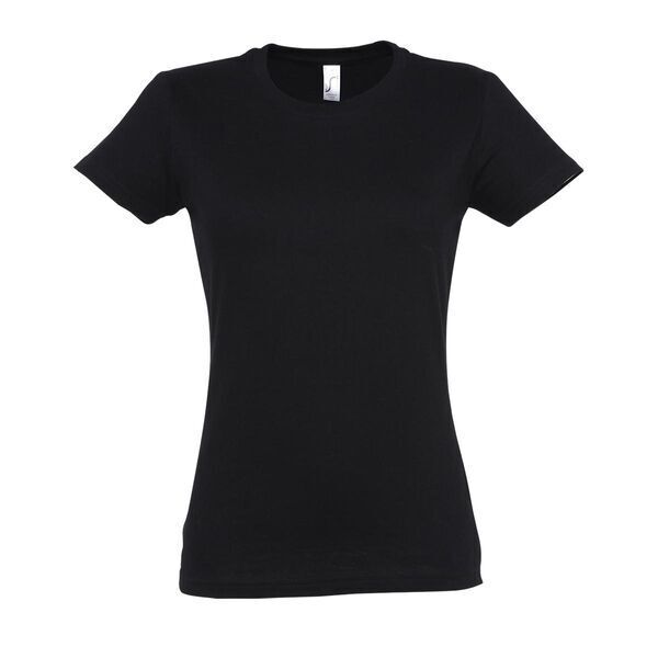 T-shirt femme coupé cousu. Col rond en bord-côte. Bande de propreté ton sur ton à l'arrière. Manches courtes. Finition double aiguille bas de manches et bas de vêtement. | Coton semi-peigné Ringspun.