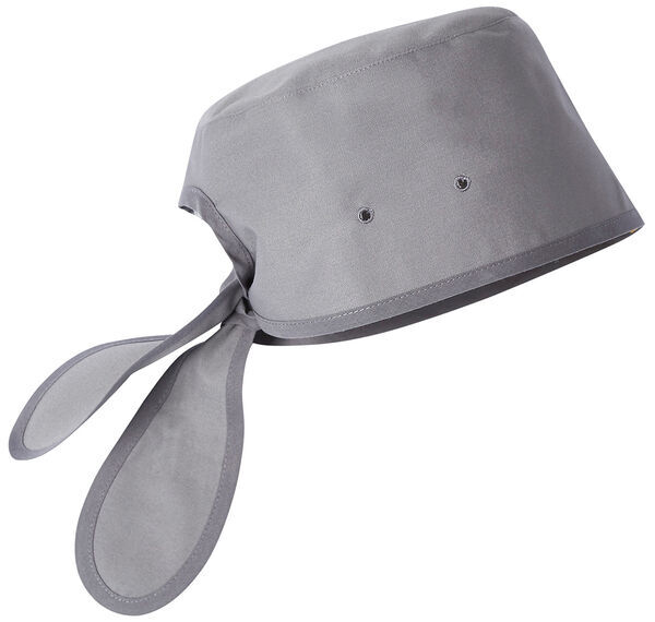 Toque à fond plat. Bandes de tissu à lacer à l'arrière. Œillets d'aération. Piqûres de montage fil ton sur ton. Hauteur : 12 cm.