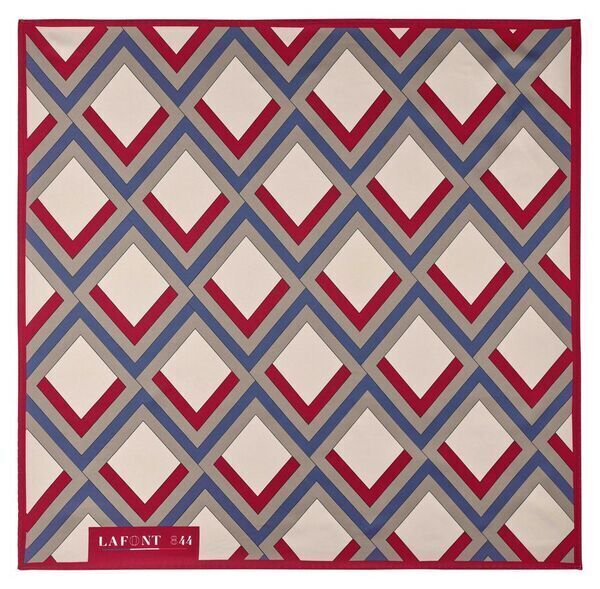 Foulard touché soie, à motif. Dimensions : 60 cm x 60 cm.