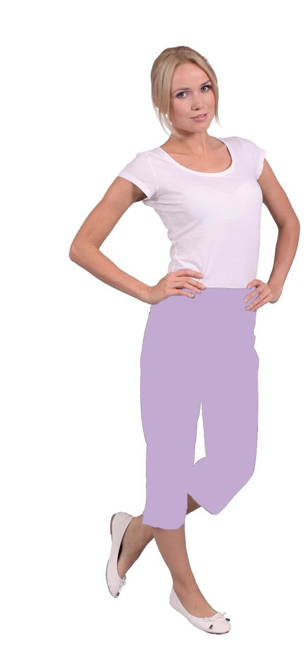 Pantacourt femme. Taille semi-élastiquée effet ventre plat. Sans poche. Fentes latérales bas de jambe. E.J. : 52 cm.