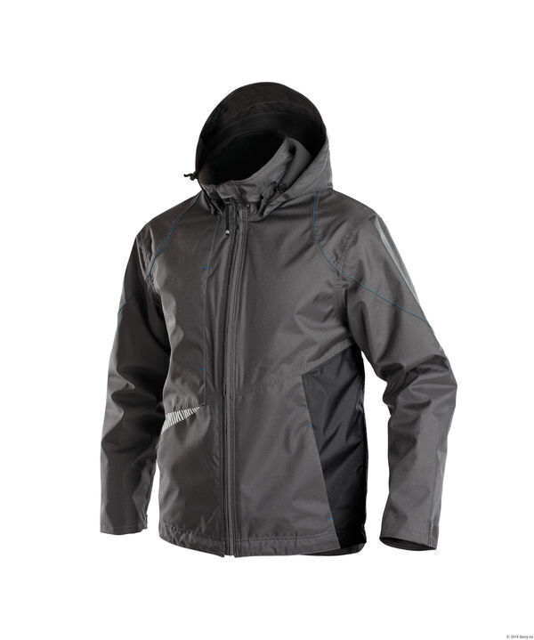 Veste imperméable et coupe vent, doublure mesh 3D. Fermeture zippée centrale avec protège menton. Capuche amovible serrage élastiquée. 2 poches basses et poitrine zippées, poche téléphone et poche intérieure. Poignets réglables avec auto-agrippant et coupe-vent. Bas de veste réglable par cordon élastique de serrage. Dos rallongé. Détails réfléchissants. Coutures doubles et thermocollées.