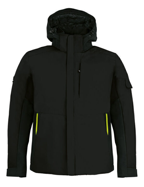 Parka homme. Capuche amovible resserrable par cordons élastiqués. Fermeture zippée sous rabat auto-agrippantes. Poche poitrine zippée à l'intérieur. 2 poches côtés zippées. 2 poches intérieure zippée cachées sous rabat. Taille réglable par cordon. Manches longues avec poche à stylo sur la manche gauche et poignets resserrables par Velcro®. | Isolation Primaloft®.