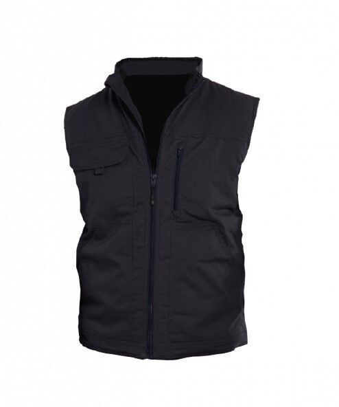 Bodywarmer doublé polaire. Col officier. Ouverture milieu devant par zip avec protège-menton. Une poche poitrine zippée et une à rabat côté gauche. 2 poches basses. Dos couvre-reins. | Sans partie métallique