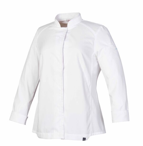 Veste bi-matières femme thermorégulante. Col officier. Fermeture milieu devant par boutons-pression cachés. Empiècement en maille épaules et côtés. Manches longues avec poche stylo manche gauche. Coupe ajustée. Matières thermorégulantes 37.5®.