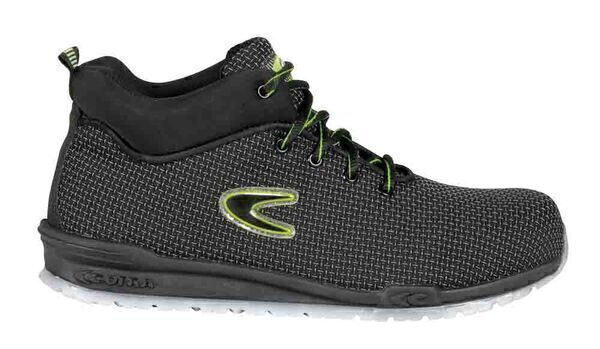 Chaussures de sécurité mixte hautes. Tige en tissu TECHSHELL. Semelle de propreté COFRA SOFT. Doublure SANY-DRY® 100% polyester. Embout aluminium 200 J. Semelle anti-perforation non métallique APT Plate. Semelle externe PU/TPU.