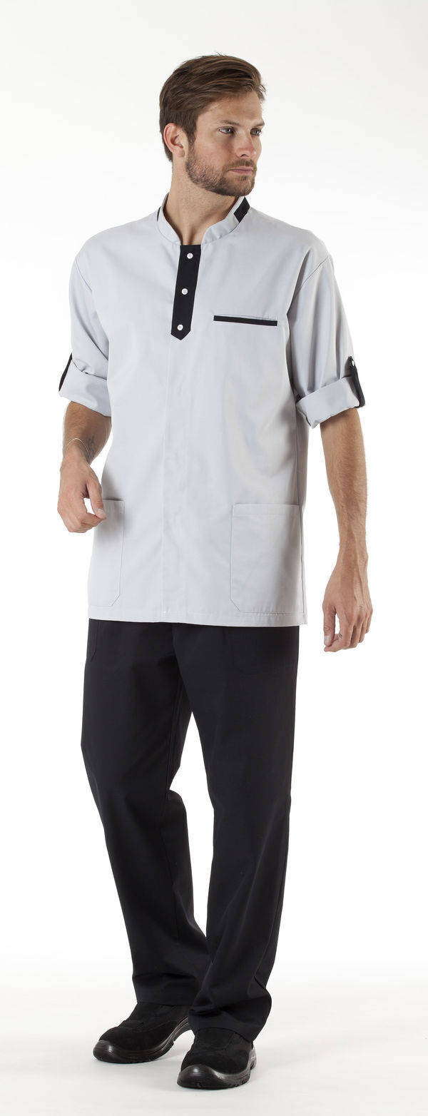 patte. Poche poitrine avec passepoil contrasté, 2 poches basses plaquées. Manches