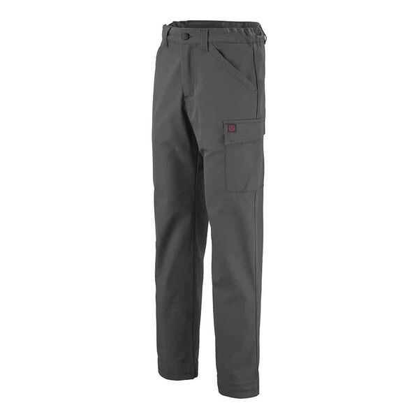Pantalon, ceinture droite avec passants, élastiquée de côtés et fermée par bouton. Braguette zippée. 2 poches italiennes. Panneau d'aisance à l'entrejambe. Poche cuisse gauche avec soufflet, sous rabat fermé par Velcros® cachés. Poche revolver plaquées au dos. Poche mètre avec bas volant. Pinces jambe dos. Finition bas de jambes par ourlets. Bas de jambes évolutifs. Mercerie tout plastique.