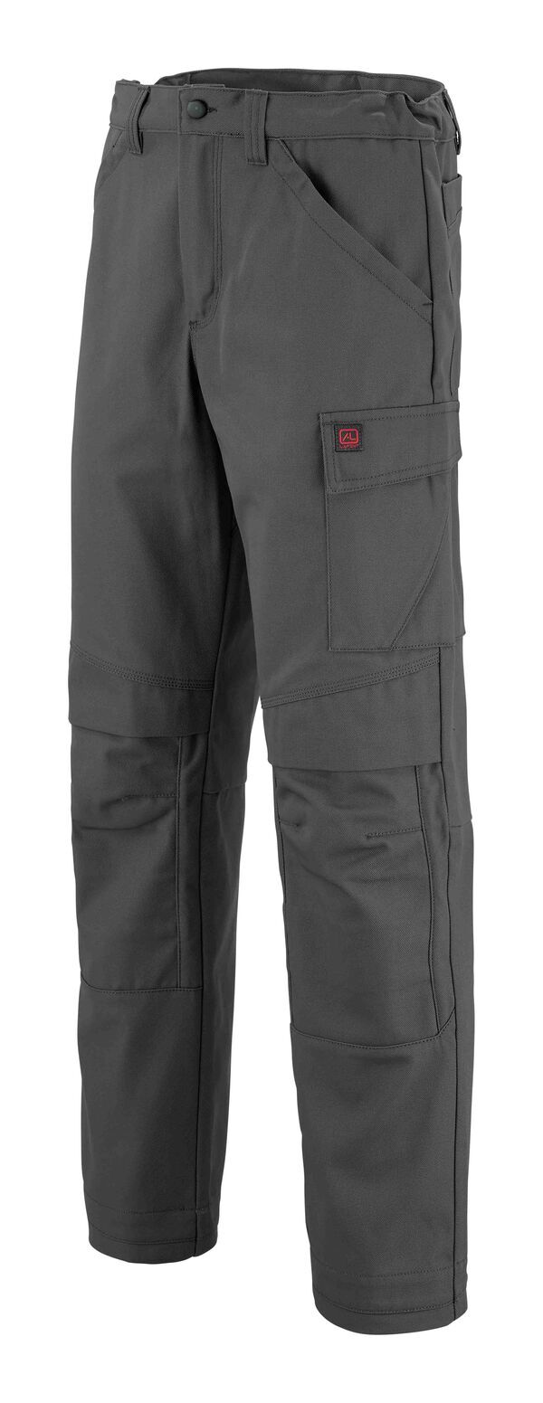 Pantalon à poches genouillères. Ceinture droite avec passants, élastiquée de côtés et fermée par bouton. Braguette zippée. 2 poches italiennes. Panneau d'aisance à l'entrejambe. Poche cuisse gauche avec soufflet, sous rabat fermé par Velcro® cachés. Poches genoux à 2 niveaux réglable avec rabat fermé par Velcro® caché. 2 poches revolver plaquées au dos. Poche mètre avec bas volant. Pinces jambe dos. Finition bas de jambes par ourlets. Bas de jambes évolutifs. Mercerie tout plastique.