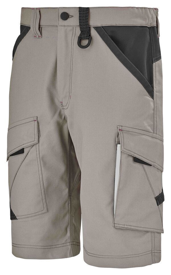 Bermuda, ceinture droite élastiquée fermée par bouton. Braguette zippée. Panneau d’aisance à l’entrejambe. 2 poches italiennes, entrées en Cordura® avec poche ticket à droite. Sangle porte-outils. 2 poches cuisses, dont poche cuisse gauche à bas soufflet et double entrée zippée sous rabat fermé. | E.J. : 28 cm.