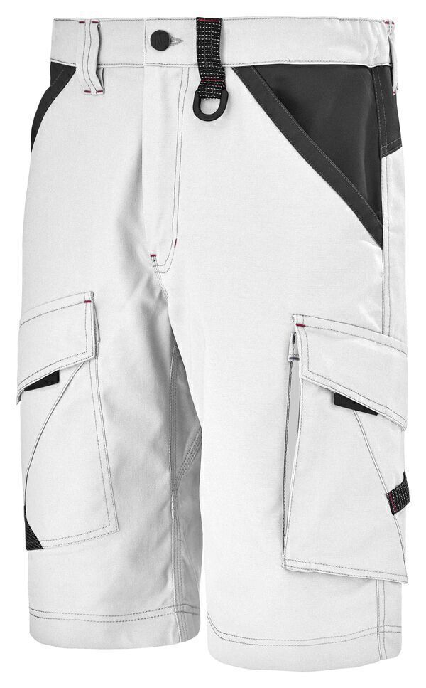 Bermuda, ceinture droite élastiquée fermée par bouton. Braguette zippée. Panneau d’aisance à l’entrejambe. 2 poches italiennes, entrées en Cordura® avec poche ticket à droite. Sangle porte-outils. 2 poches cuisses, dont poche cuisse gauche à bas soufflet et double entrée zippée sous rabat fermé. | E.J. : 28 cm.