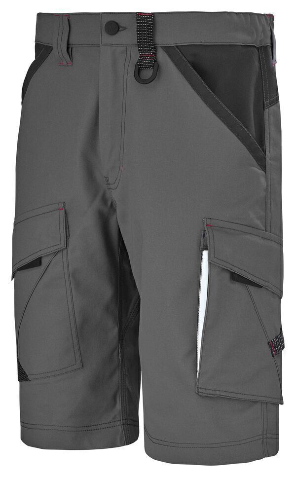 Bermuda, ceinture droite élastiquée fermée par bouton. Braguette zippée. Panneau d’aisance à l’entrejambe. 2 poches italiennes, entrées en Cordura® avec poche ticket à droite. Sangle porte-outils. 2 poches cuisses, dont poche cuisse gauche à bas soufflet et double entrée zippée sous rabat fermé. | E.J. : 28 cm.