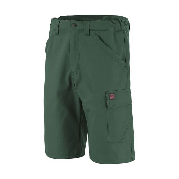 Bermuda de travail, ceinture élastiquée côtés et fermée par bouton. Braguette zippée. 2 poches italiennes. Panneau d'aisance à l'entrejambe. Poche cuisse gauche à soufflet, sous rabat fermé par Velcro® cachés. Collerette de marquage intérieur dos. Poche revolver plaquée au dos. Poche mètre avec bas volant côté droit. | E.J. : 29 cm.