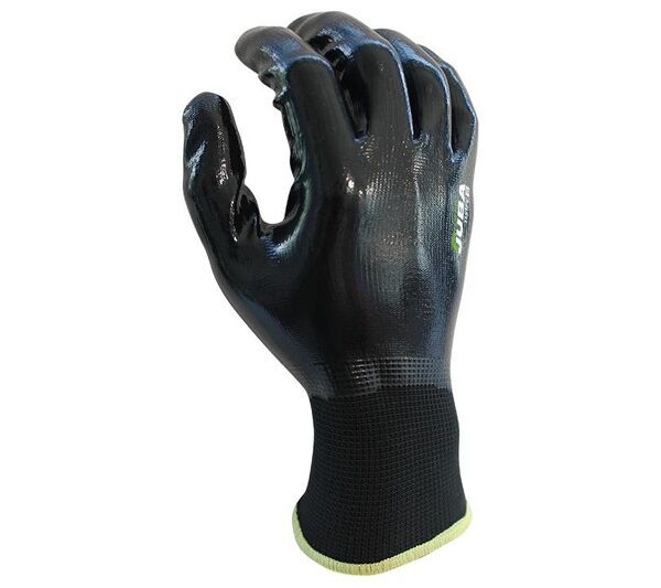 Gants support tricoté polyester sans couture. Jauge 13. Enduction complète de nitrile étanche. Poignet tricot élastiqué.