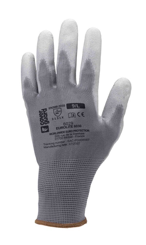 Gants support tricoté sans couture en polyester. Jauge 13. Enduction PU. Poignet tricot élastiqué.