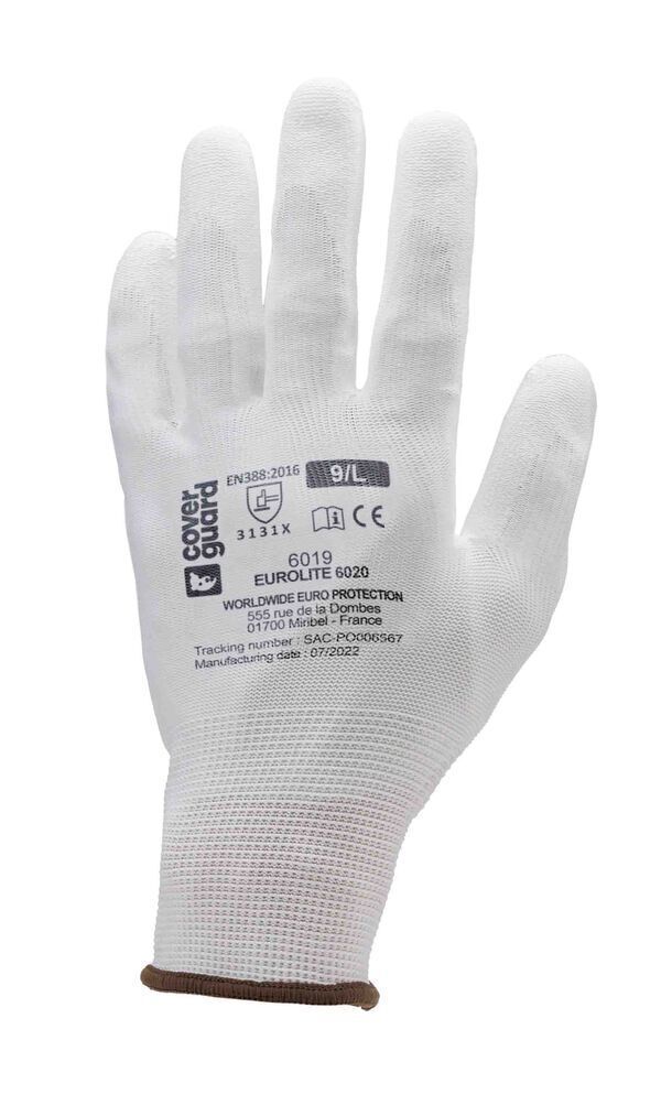 Gants support tricoté sans couture en polyester. Jauge 13. Enduction PU. Poignet tricot élastiqué.