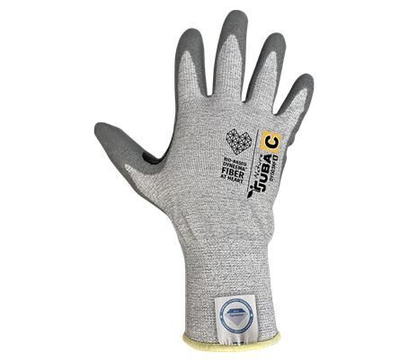 Gants support tricoté sans couture en fibre Dyneema® Diamond Bio-Based. Jauge 15. Enduction PU. Renfort pouce-index. Poignet tricot élastiqué.