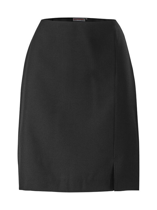 Jupe de service. Zip invisible au dos. Fente avant, pinces dos. Coupe droite. Doublée. Longueur : 52 cm pour taille 38.
