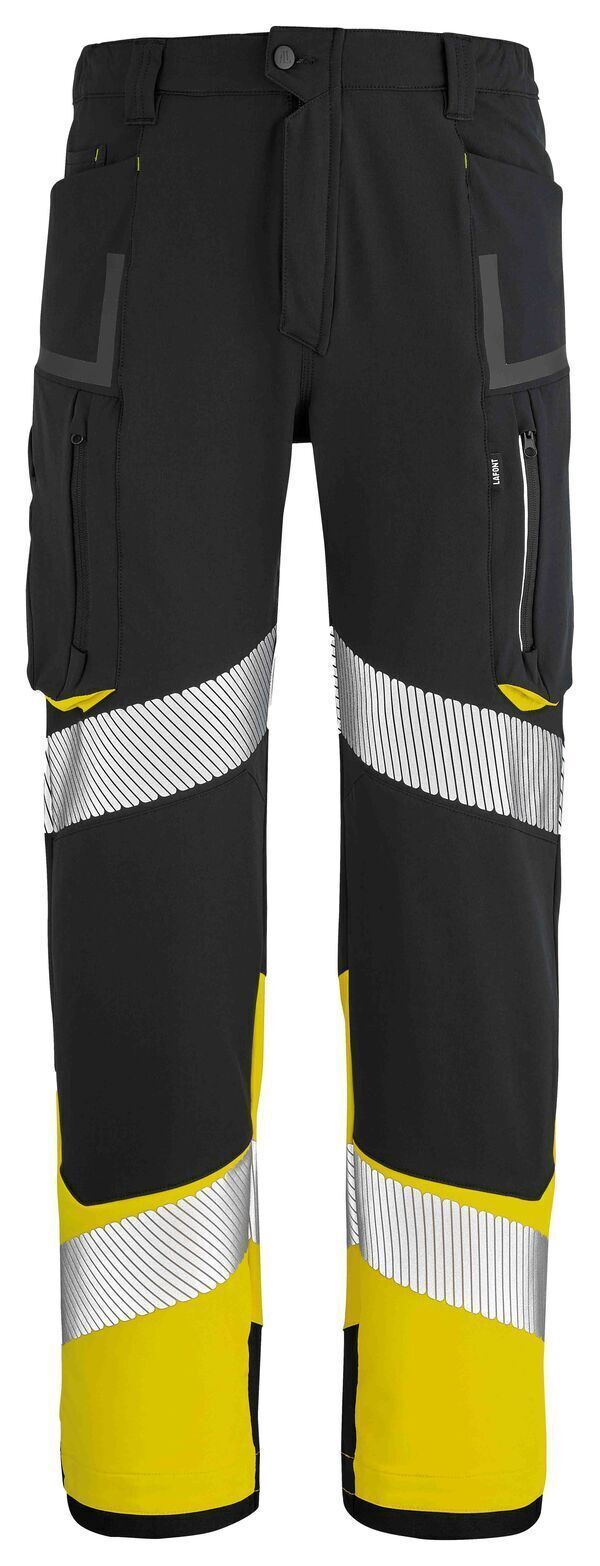 Pantalon haute visibilité full stretch. Ceinture élastiquée côtés avec 5 passants. Fermeture à glissière et bouton clou apparent. 2 poches cavalières avec entrées contrastées. Poche ticket côté droit. Poches cuisses à soufflets avec fermeture à glissière et garage. Poche genoux en Cordura® avec ouverture par le haut et fermeture auto-agrippante. Poche mètre à double entrée. Poche dos plaquée. | Bandes rétroréfléchissantes segmentées 70 mm. E.J. : 82 cm (+5 cm)