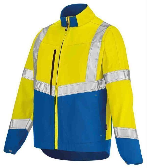 Blouson haute visibilité. Col montant avec mentonnière contrastée. Fermeture à glissière sous double lèvres. Poche poitrine à fermeture à glissière sous garage. 2 poches basses avec fermeture à glissière. Manches longues. Bas de manches fermés par grippers. Poche intérieure plaquée fermée par bande auto-agrippante. | Bandes rétroréfléchissantes segmentées 50 mm.