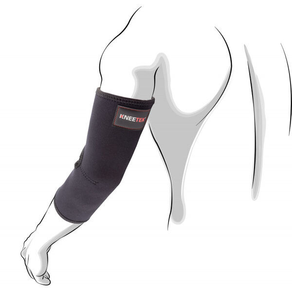 Orthèse de maintien pour le coude. Fournie un soutien et applique une compression. Renfoncement dans le creux du coude pour assurer une faible compression des vaisseaux.