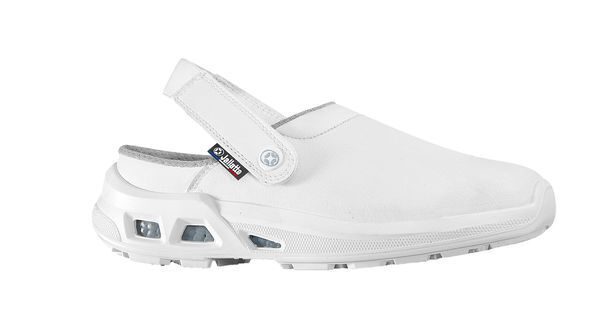 Sabots non sécurité mixte. Tige microfibre hydrofuge. Bride élastique rabattable et amovible. Première de propreté Soft Gel®. Doublure respirante en maille 3D. Embout aluminium Light Plus. Intercalaire en TPU Infinergy® BASF®. Semelle externe PU2D.