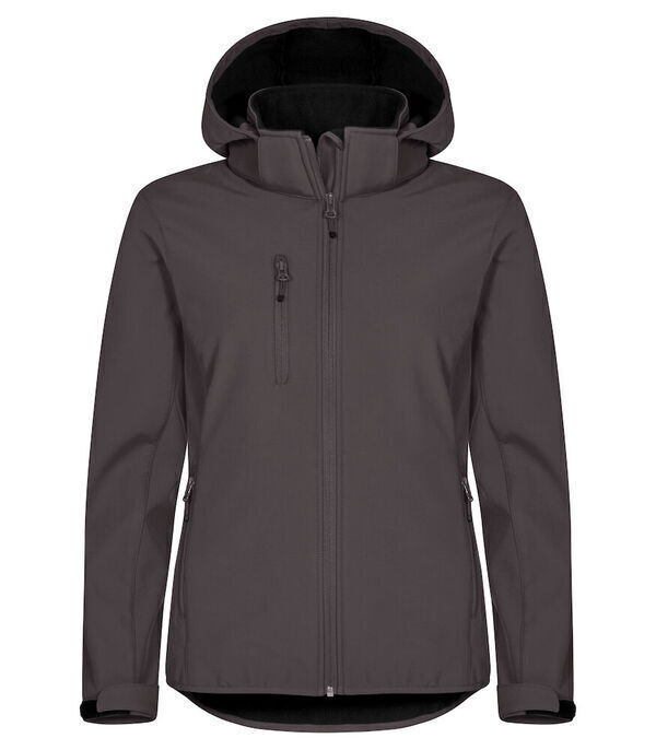 Veste softshell 3 couches femme. Capuche amovible. Col montant. Fermeture centrale zippée avec sous-patte et protège-menton. Poche poitrine zippée ton sur ton. 2 poches côtés zippées. 2 poches intérieures. Poignet réglable par patte auto-agrippante. Bas de veste biais élastiqué. Dos rallongé. | Imperméabilité et respirabilité : 3000/1000