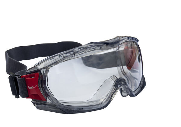 Lunettes-masques avec oculaire polycarbonate. Bandeau élastique. Ventilation indirecte pour la protection contre les éclaboussures de liquide. Traitement antibuée et antirayures.